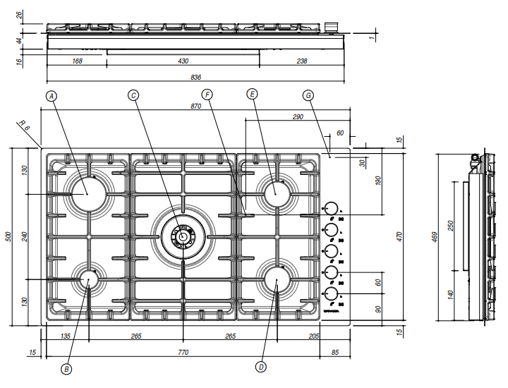 Barazza - BUILT-IN AND FLUSH OFFICINA HOB 90cm