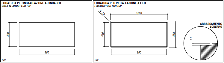 본제품은 가구 상판과 같은 높이로 평평하게 매립 시공이 가능합니다.
