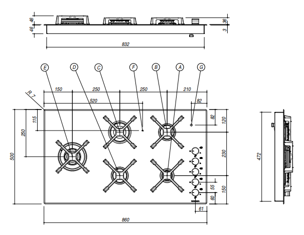 바라짜 셀렉트 플러스 5구 가스쿡탑 90cm Barazza SELECT PLUS Gas Cooktop 1PSP95