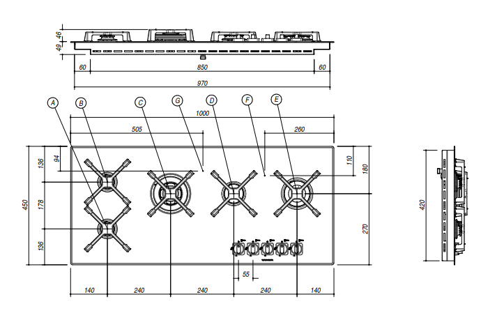 바라짜 유니크 5구 가스쿡탑 100cm Barazza Unique Gas Cooktop 1PUN105