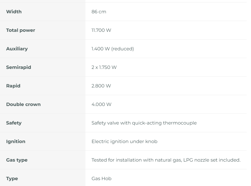 포스터 5구 가스쿡탑 86cm Foster Cooker hob Power Gas Cooktop 7016032