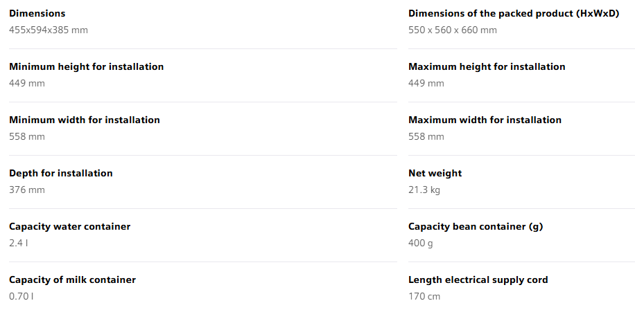 지멘스 오토매틱 커피 머신 블랙 60cm
