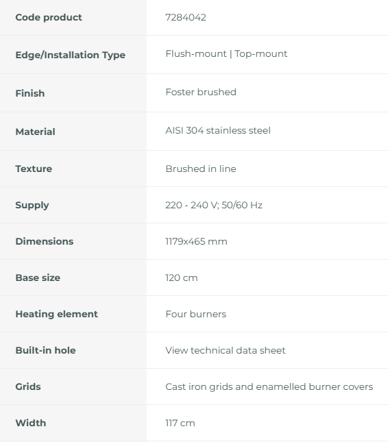 Gas cooktop 7284 042