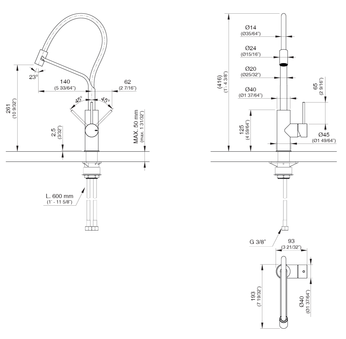 체아디자인 MIL203 플렉서블 샤워헤드 주방수전 Ceadesign MIL203