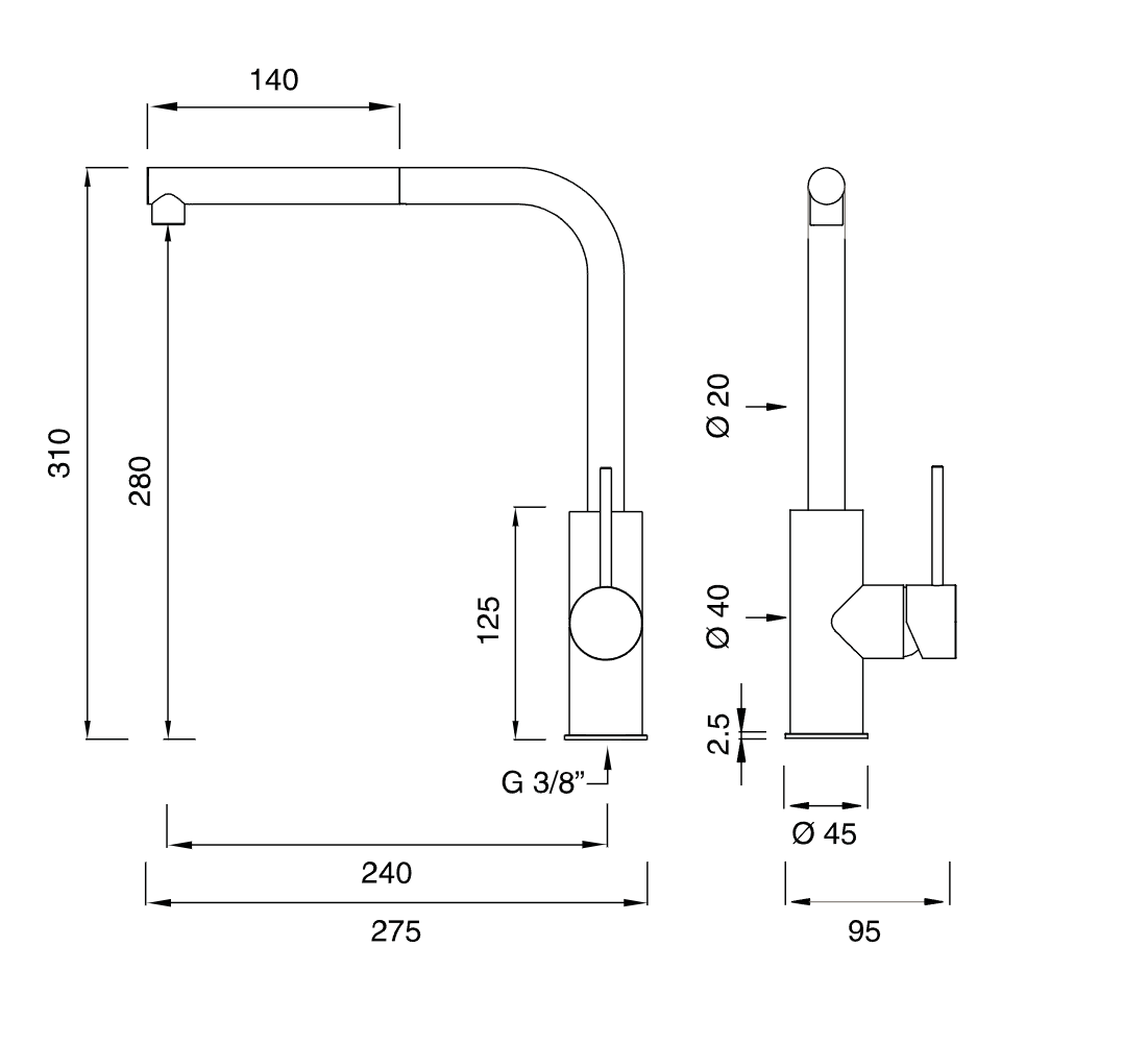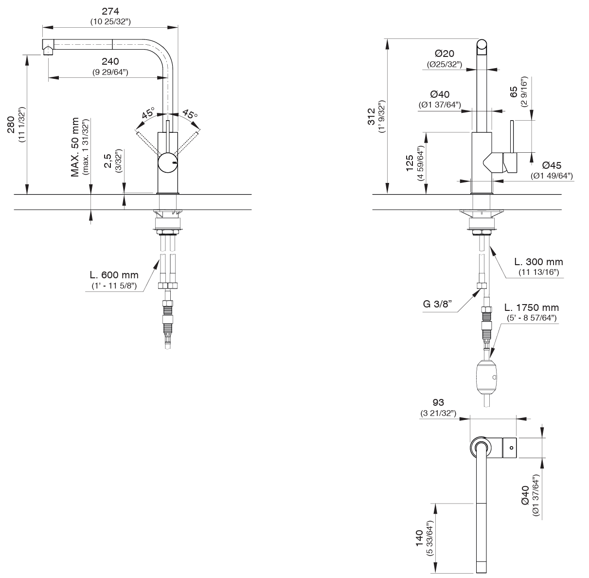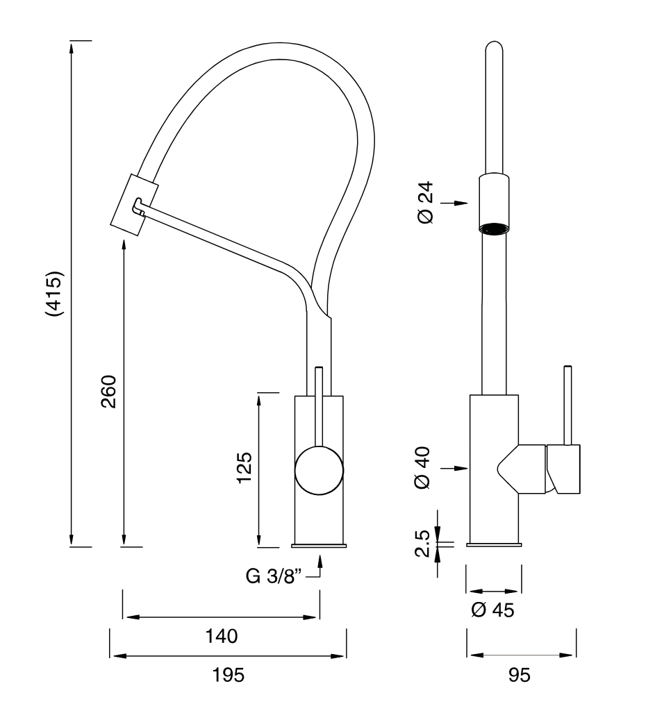 체아디자인 MIL205 플렉서블 샤워헤드 주방수전 Ceadesign MIL205