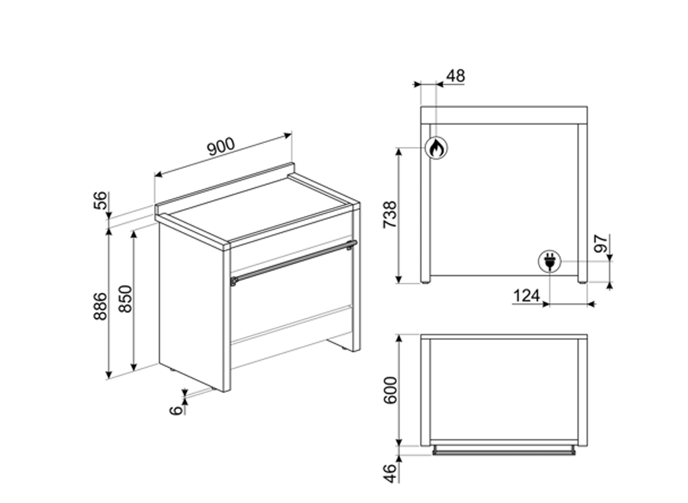 스메그 클라시카 가스쿡탑 + 전기오븐 쿠커 SMEG A1-990×60cm