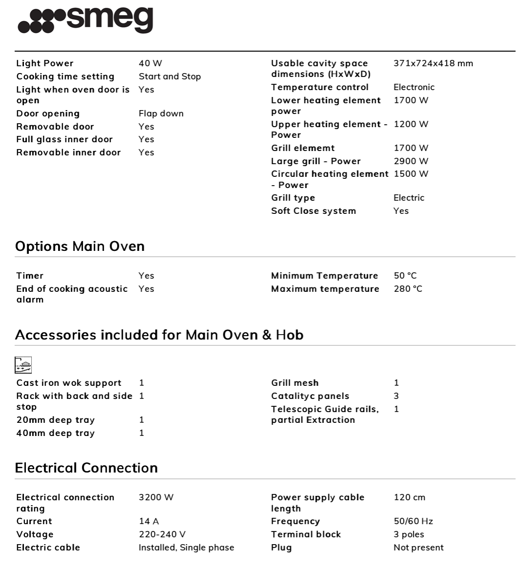 스메그 클라시카 가스쿡탑 + 전기오븐 쿠커