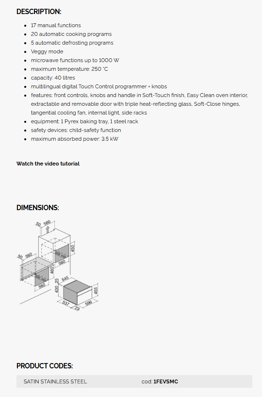 Barazza Icon Exclusive built-in compact combi-microwave oven