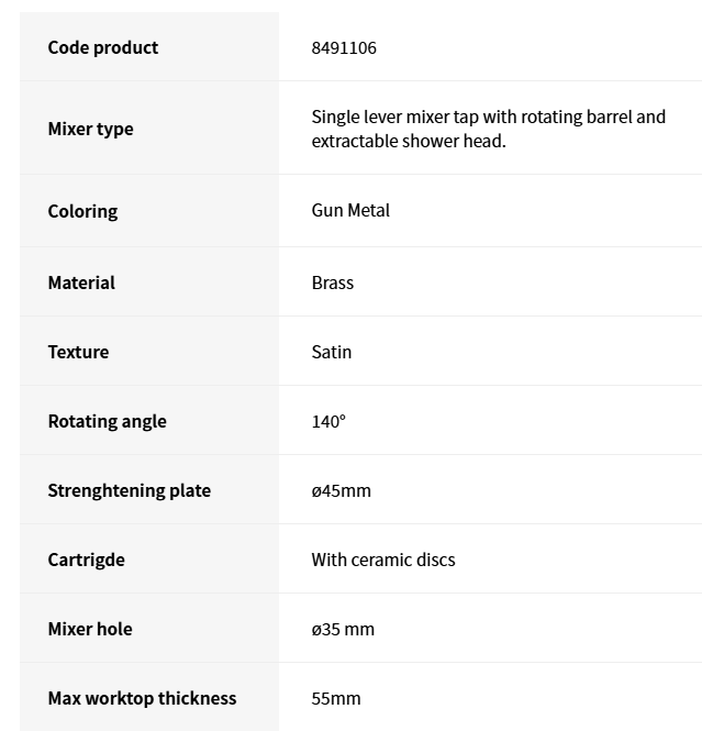 포스터 볼타 건메탈 인출식 주방수전Foster Mixer Tap Volta Gun Metal 8491106